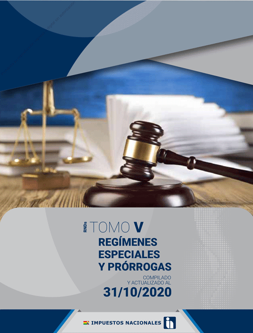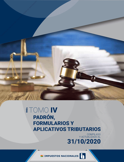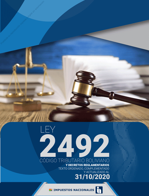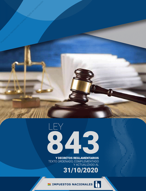 Descarga Gratuita LEY 843 al 31-03-21. LEY 2492 al 31-03-21. TOMO I – IMPUESTOS al 31-03-21. TOMO II – SISTEMA DE FACTURACIÓN ELECTRÓNICA al 31-03-21. TOMO III – CÓDIGO TRIBUTARIO al 31-03-21. TOMO IV – PADRÓN, FORMULARIOS Y APLICATIVOS TRIBUTARIOS al 31-03-21. TOMO V – REGÍMENES ESPECIALES Y PRÓRROGAS al 31-03-21.