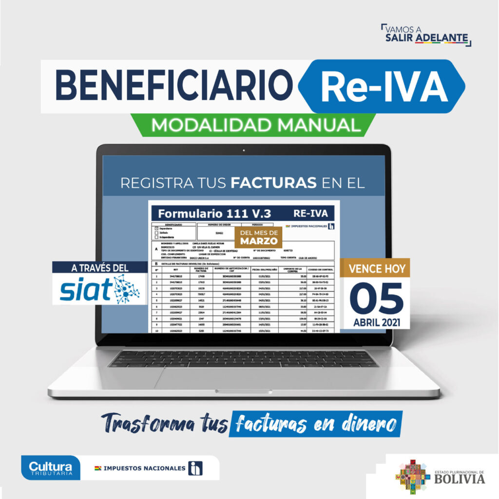 Registra todas tus Facturas en el Formulario 111 V.3 a través del SIAT del mes de Marzo Vence hoy 05 de Abril 2021